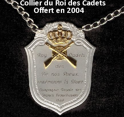 ![]() Collier d'argent du roi des Cadets: offert Porte mon nom au dos en tant que donateur |
