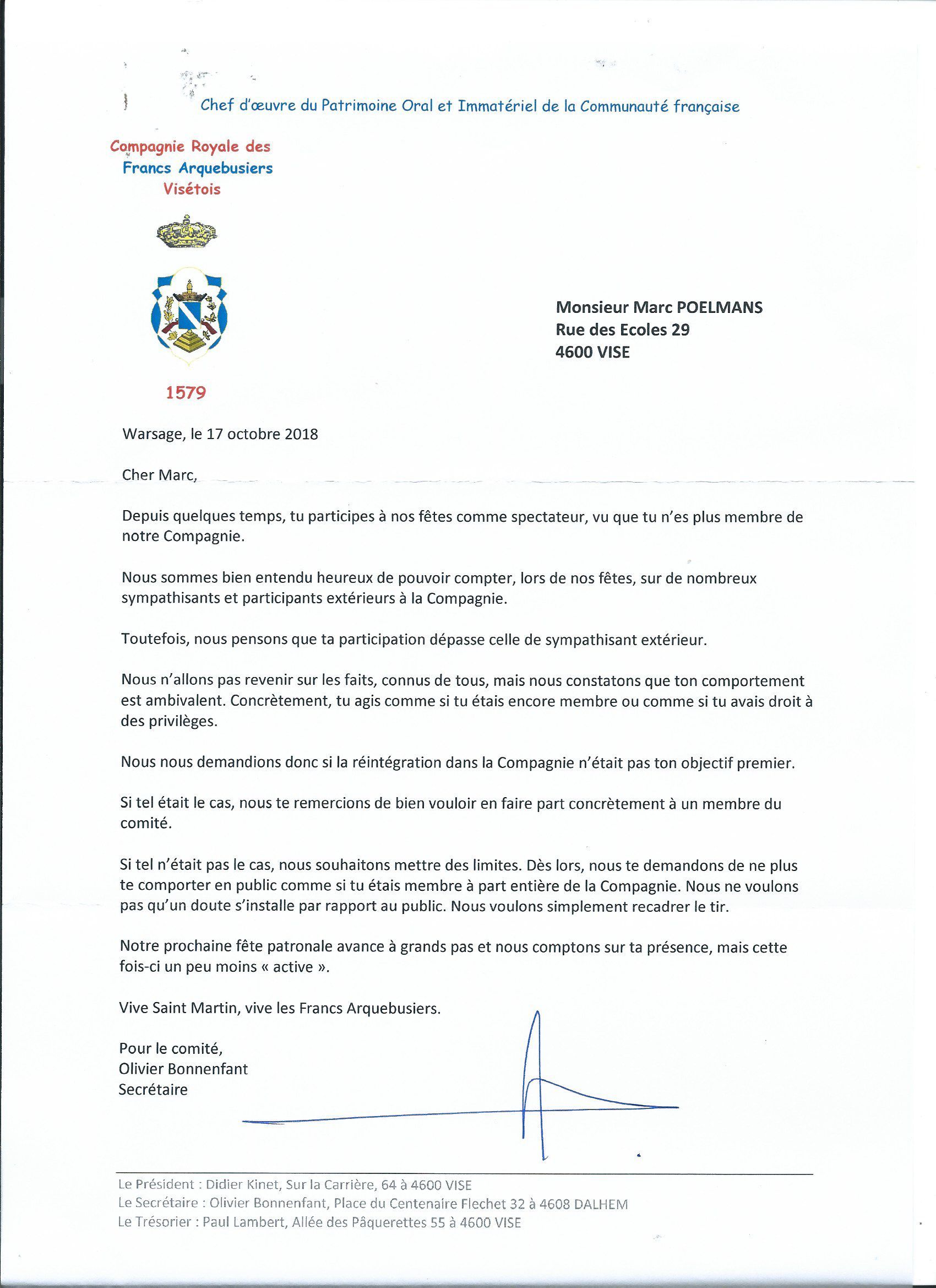 d'aucune sorte par la SCRL Les Francs Arquebusiers, seule personnalité